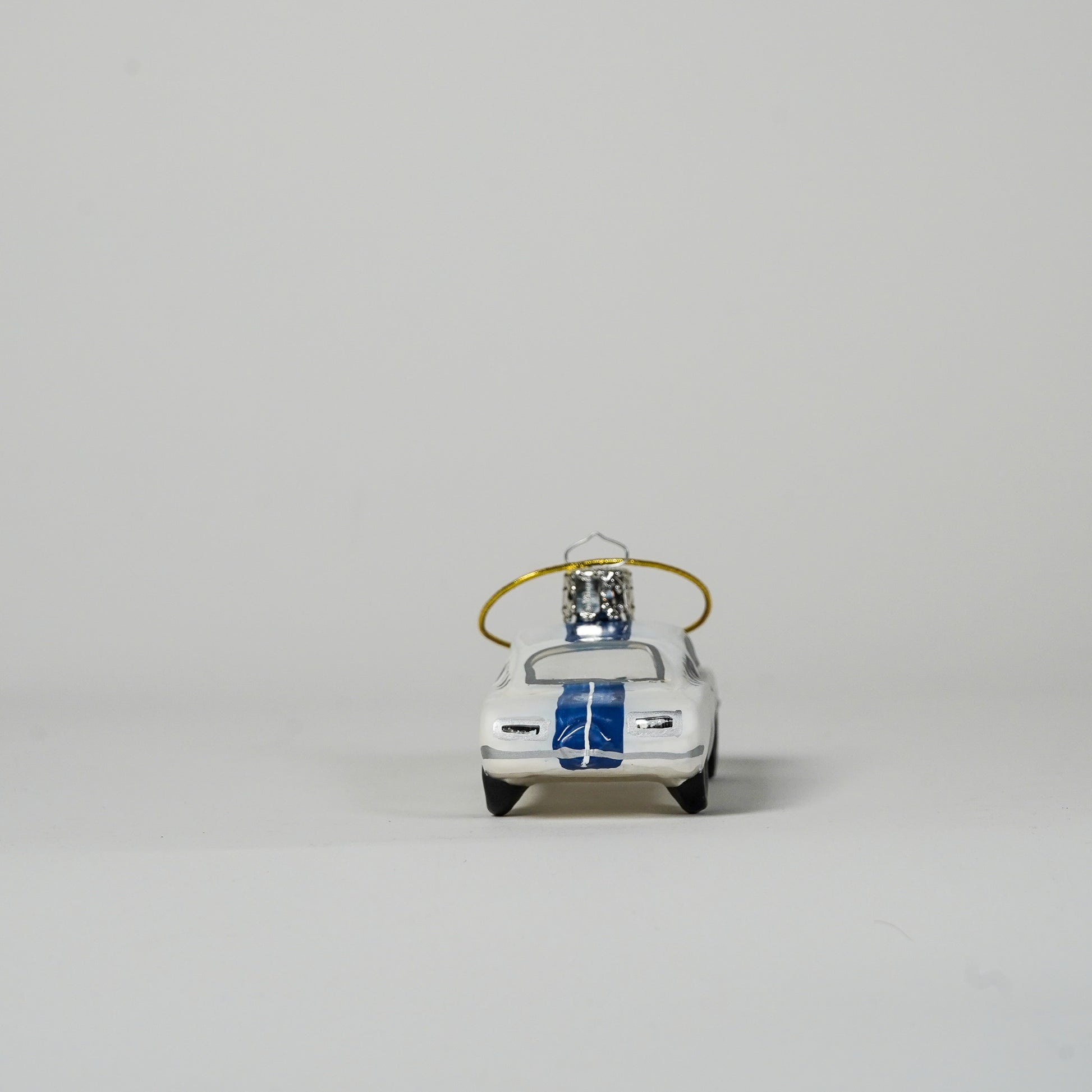 In white with navy stripes, this Christmas bauble exudes charm and power. It captures the essence of a timeless classic, famous for its rarity, great sound and iconic design. Whether you love cars or know someone who does, this decoration is an indispensable addition to the Christmas tree.